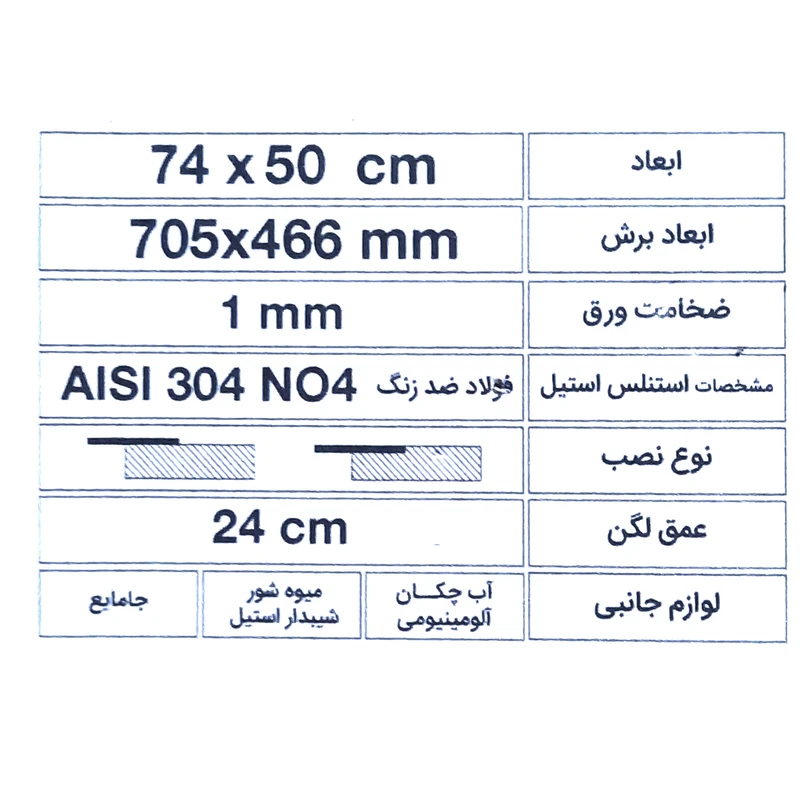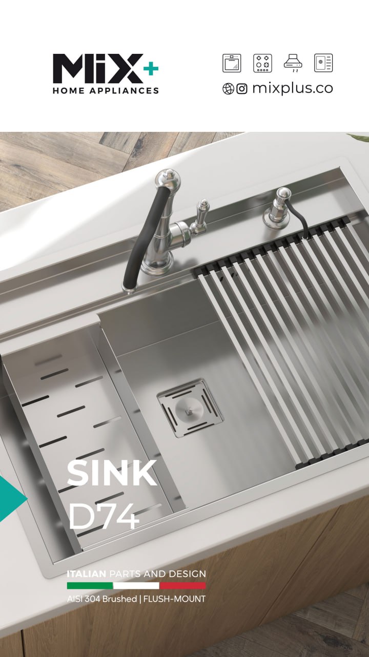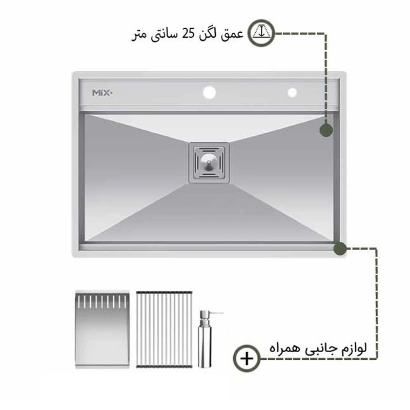 سینک ظرفشویی میکس پلاس مدل D74 توکار تک لگن