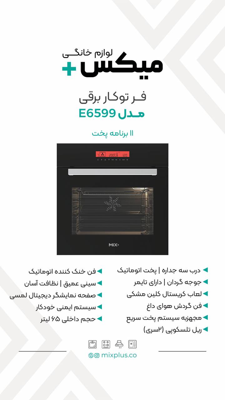 این فر مجهز به فن خنک کننده اتوماتیک,سیستم ایمنی خودکار,جوجه گردان,ریل تلسکوپی میباشد.