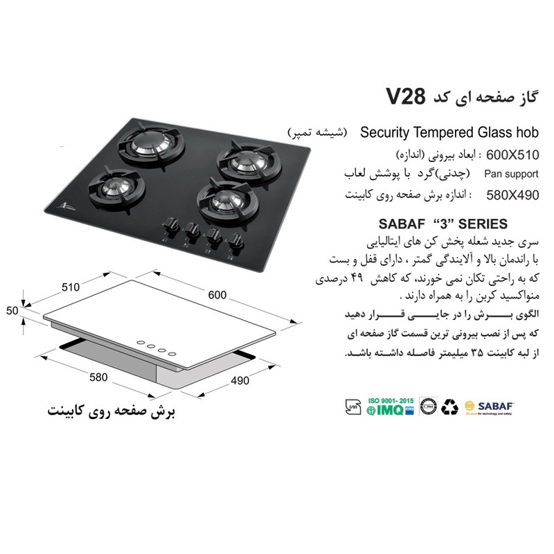 گاز اخوان V28 از سری گازهای شیشه ای با منبع انرزی گازی می باشد. گاز اخوان V28 دارای 4 شعله ، می باشد و در ساخت آن از قطعات ایتالیایی استفاده شده است گاز ونوس 28 اخوان از سری گاز های ونوس سرشعله هایی زیبا با راندمان احتراق 25 درصد بالاتر از حد استاندارد را دارد که باعت جوش آمدن سریعتر آب بطور قابل ملاحظه می شود و همچنین با کاهش زمان پخت باعث کاهش مصرف گاز و آلایندگی کمتر خواهد شد. همچنین شعله های آبی، تنوع در مدل، شبکه بندی مناسب چدنی ها و سهولت در نظافت ویژگی این محصول است. گاز رومیزی چهار شعله شیشه ای اخوان مدل V-28 ونوس با طراحی مدرن یکی از بهترین گازهای استیل اخوان با قطعات SABAF سری 3 ساخت ایتالیا است.