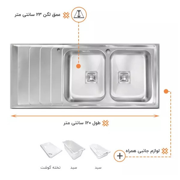 ابعاد سینک: 510 × 1200 میلیمتر
