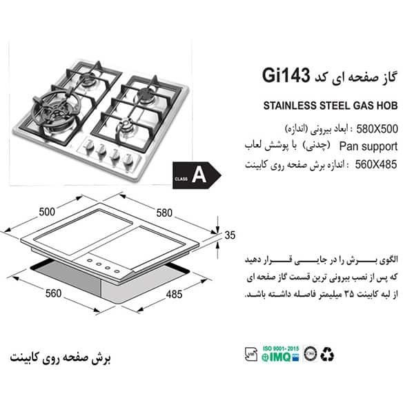 اجاق گاز اخوان مدل GI143 ظرفیت ۴ شعله استیل