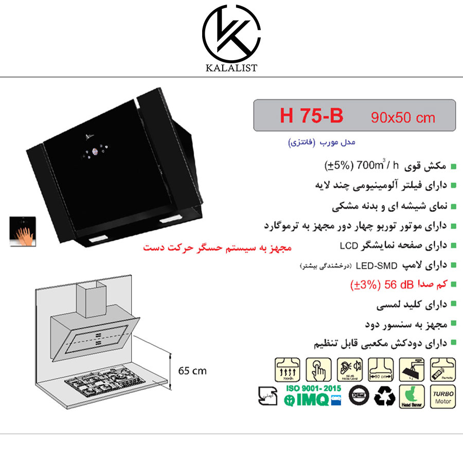 هود آشپزخانه اخوان مدل H75 مورب ۴ سرعته