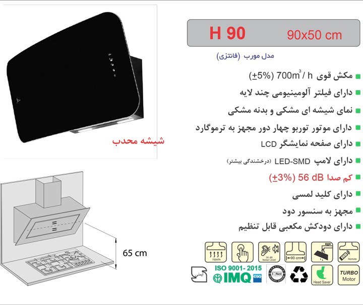 هود آشپزخانه اخوان مدل H90 مورب ۹۰ سانت ۴ سرعته