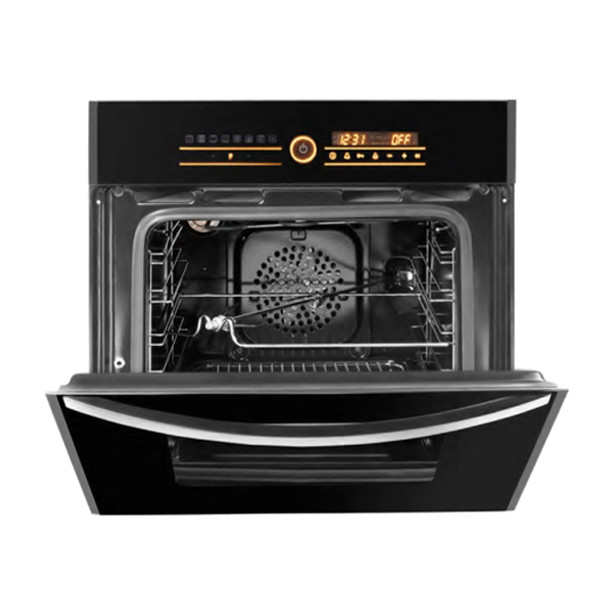 - نما شیشه مشکی ابزار خورده - کارکرد تمام برقی دارای سه المنت - دارای فن داکتی داخلی جهت یکنواخت کردن حرارت - دارای حسگر پخت - شیشه ایتالیایی - دارای لعاب Easy TO Clean (پاک کنندگی آسان)