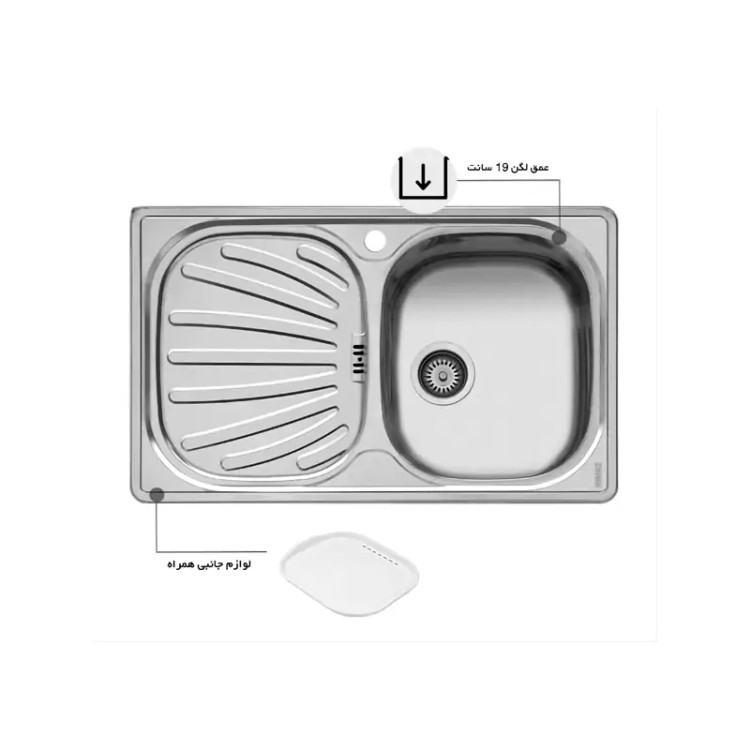 نام محصول : سينک ظرفشویی اخوان کد 14 | Akhavan sink 14 inset نصب به صورت : توکار نوع ورق استیل : استیل ضد زنگ Aisi – 304 تعداد و نوع لگن : یک لگن – بزرگ ضخامت ورق استفاده شده : 0/8 میلیمتری ابعاد خارجی محل نصب : 80 در 50 سانتی متر عمق لگن : دارای لگن عمیق 19 سانتی متر سمت لگن ها : قابلیت انتخاب لگن چپ و راست در هنگام سفارش لوازم سیفون: دارد به همراه زیراب فانتزی بزرگ لوازم جانبی همراه : سبد ، تخته گوشت می باشد. امکان اضافه شدن تخلیه لباسشویی : دارد سوراخ نصب شیر : دارد – امکان نصب شیرالات با وزن متوسط نوع اتصال سینک به کابینت : بست فلزی نوع زیراب استفاده شده : دایره با تخلیه سریع نوع طراحی لگن : طراحی لگن ها فانتزی کشور کارخانه سازنده : ایران مدت گارانتی : 10 سال محصولی پر فروش,با کیفیت بالا,خوش قیمت بادوام با بسته بندی شکیل و کارتن که سالم به دست شما میرسد ارسال به سراسر کشور فقط با باربری (هزینه ارسال بر عهده مشتری میباشد ) ارسال به تهران و اطراف تهران با اسنپ.پیک و... (هزینه ارسال بر عهده مشتری میباشد )