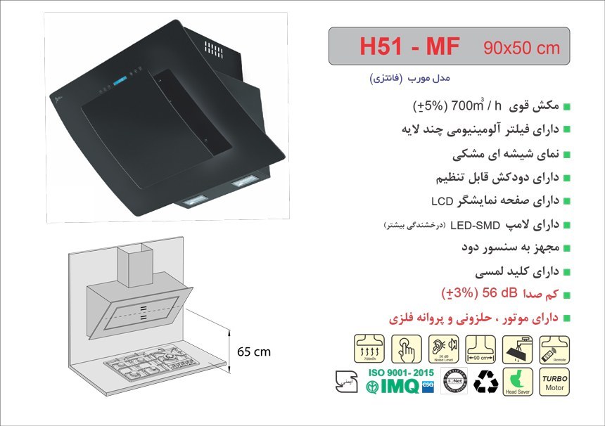 هود آشپزخانه اخوان مدل H51-MF مورب سایز ۹۰ سانت ۴ سرعته
