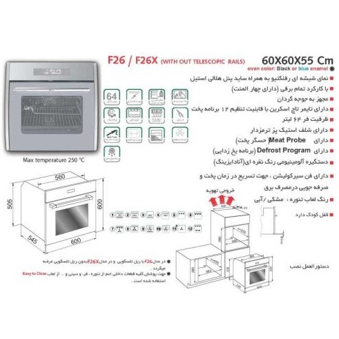 فر توکار برقی کد F26 اخوان موجود در منصفانه با کارکرد برقی دارای 4 المنت و گریل پر قدرت با رده بندی انرژی A می باشد.