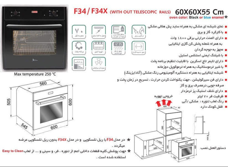 گنجایش حجم فر : 70 لیتر
