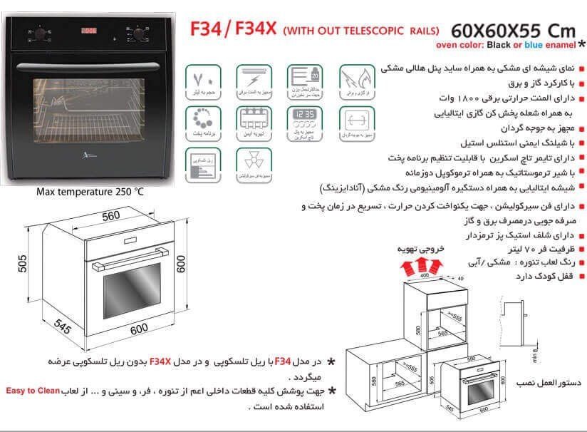 گنجایش حجم فر : 70 لیتر